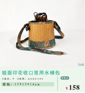 兴文竹品-缎面印花收口双用水桶包